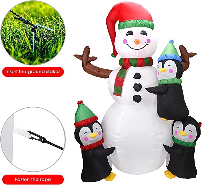 The Christmas inflatables decoration with build-in LED Lights are very suitable for Christmas blow up yard decorations and is very suitable for watching at night, be noticed by neighbors, and leave a deep impression.