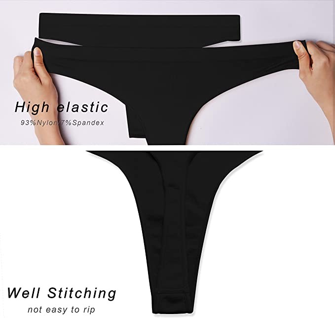 Great Value 3-Pack and 6-Pack: Available in 3-Pack or 6 Classic Colors. Save money and beautify your look with our Women's 3-Pack or 6-Pack Seamless Invisible Sexy Sports Thong Panties, because just one breathable panty isn't enough! We put effort into ensuring the quality of every piece of underwear , So our seamless invisible breathable stretch thong panties are well sewn in every detail and won't tear easily even after high intensity exercise.