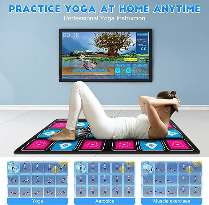 • Multifunctional HDMI Wireless Dance Pad: Equipped with the latest quad-core chip, it provides a smooth and stable picture on HDMI devices when dancing. Support 4 key, 6 key, hand and foot, MTV, cartoon, hot wireless controller game and sports mode. Built-in 155 dance songs (including three music styles: Western, Asian, children's style, can meet the needs of different people), 37 classic and hot games, 6 HD camera games, 3 running games, and 48 sets of yoga practise. Great for family and friends.