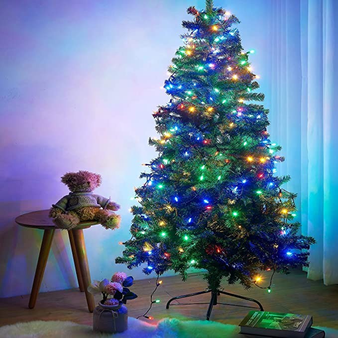 Lulu Home 6 Ft Artificial Christmas Tree with 300 LED Warm White String Lights (Not Pre-Strung) and 850 Branch Tips, 8 Lighting Modes Artificial Christmas Tree with Iron Stand