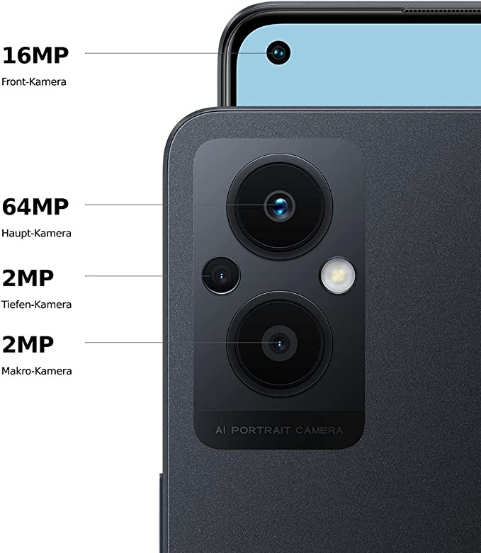 OPPO Reno8 Lite 5G Smartphone, 6.43" AMOLED Display, 64 MP Triple Camera, 4500 mAh, 33W SUPERVOOC, Snapdragon 695, 8 GB RAM, 128 GB ROM, Cosmos Black
