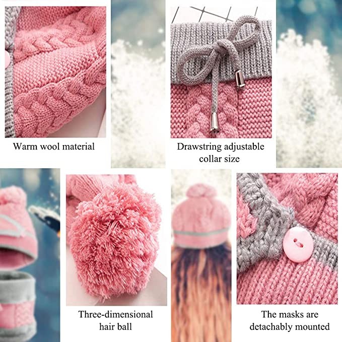 • 3 IN 1 ACCESSORIES - 1 set of 3 includes a knitted winter hat with fleece lining, adjustable scarf and a detachable face shield, this combo will keep your head, ears and neck warm.