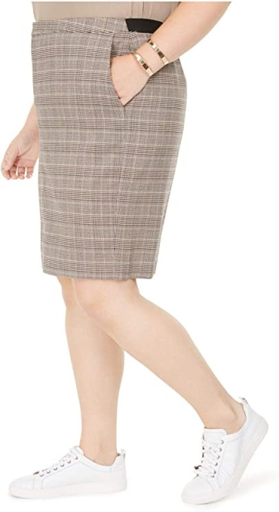 Bar III Women's Beige Zip Plaid Knee-Length Pencil Skirt Size 24W