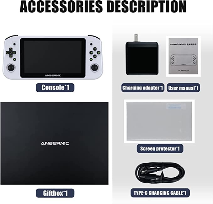 • 【Multi-function machine for office anytime】WIN600 supports users to download office software, it is your ideal choice if you find your laptop is too heavy. In addition, WIN600 also adopts OCA fully laminated touch screen, dual-speaker stereo speakers, supports multi-platform games in multiple formats, supports users to download their own games in relevant formats, and supports vibration motors.