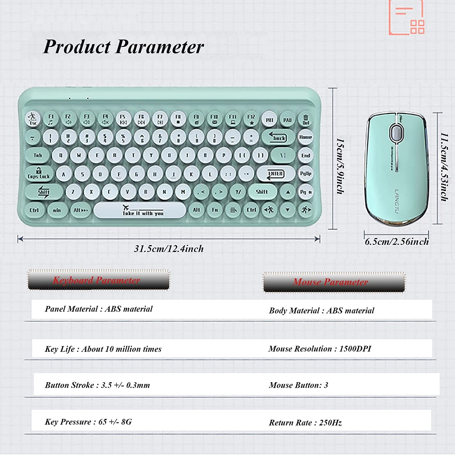 • Compact Keyboard and Mouse Combo - This mini keyboard and mouse with 85 keys fits easily in your bag. It helps you enjoy and get your work done wherever you go, but in a smaller size (keyboard: 12.4 x 5.9 inches; mouse: 4.5 x 2.5 inches)